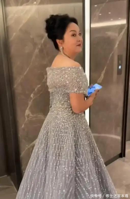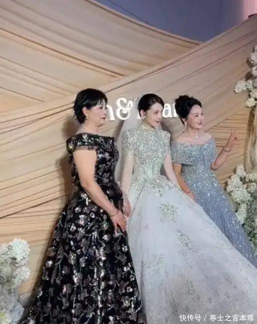 挽着婆婆和亲妈的画面更显温馨,短发婆婆干练优雅,亲妈则穿浅蓝色一字肩碎钻礼服,盘发配流苏耳饰,典雅气质一看就是高颜值源头。